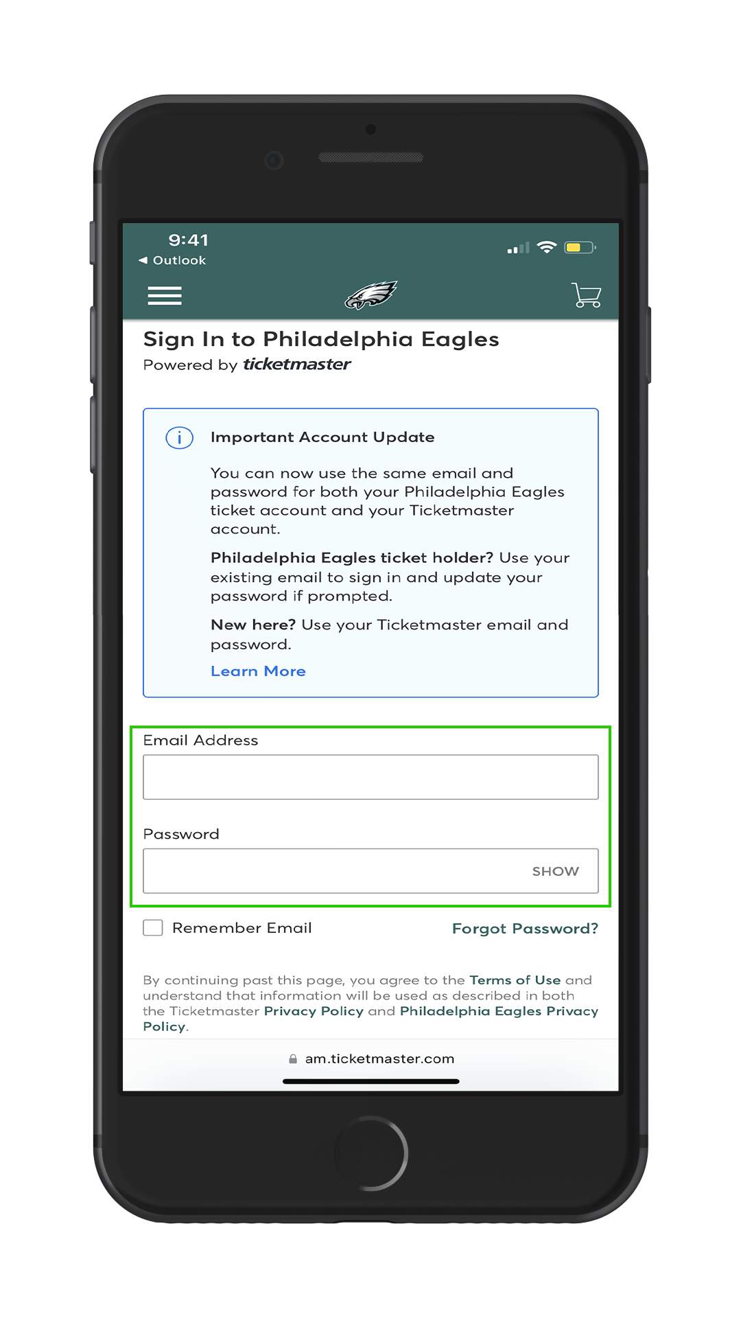 After receiving your confirmation email containing your parking pass, click on the link and sign in to your Ticketmaster account associated with your tickets.